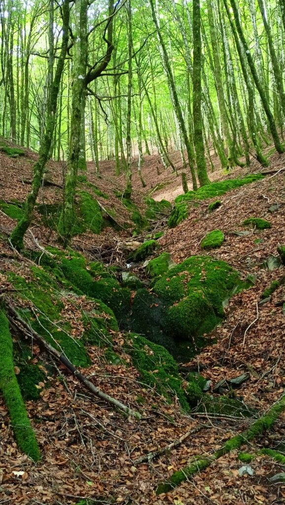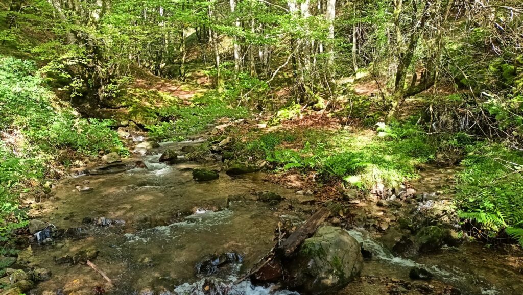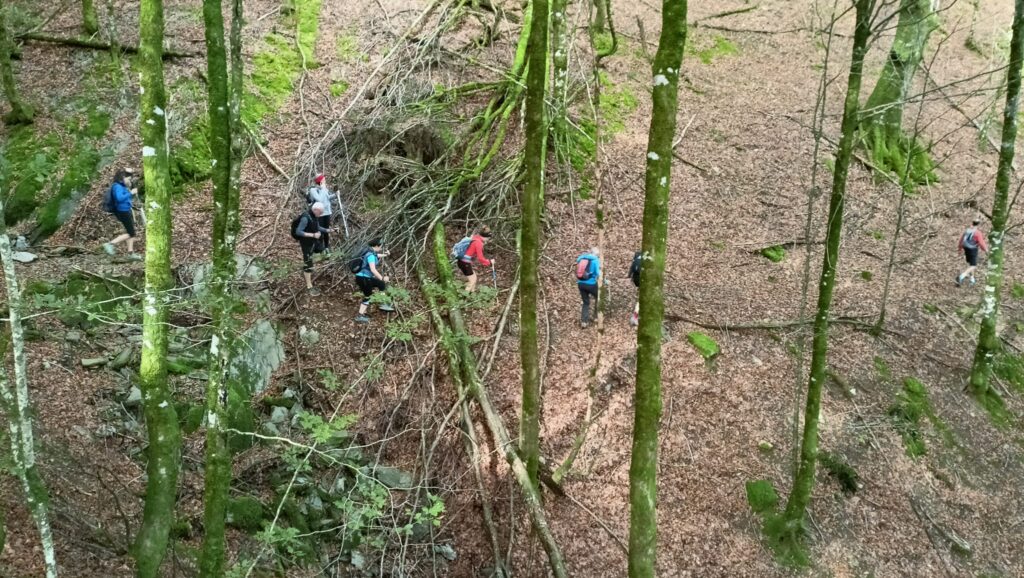 Hortik dena behera izango da. Bi ibilbideak zatitxo batean banatu egingo dira baina Urkiagara jaitsi aurretik berriro bat egingo dute. GR 12a hartuko dugu eta borda baten albotik pasata, Urkiaga mendatera iritsiko gara.