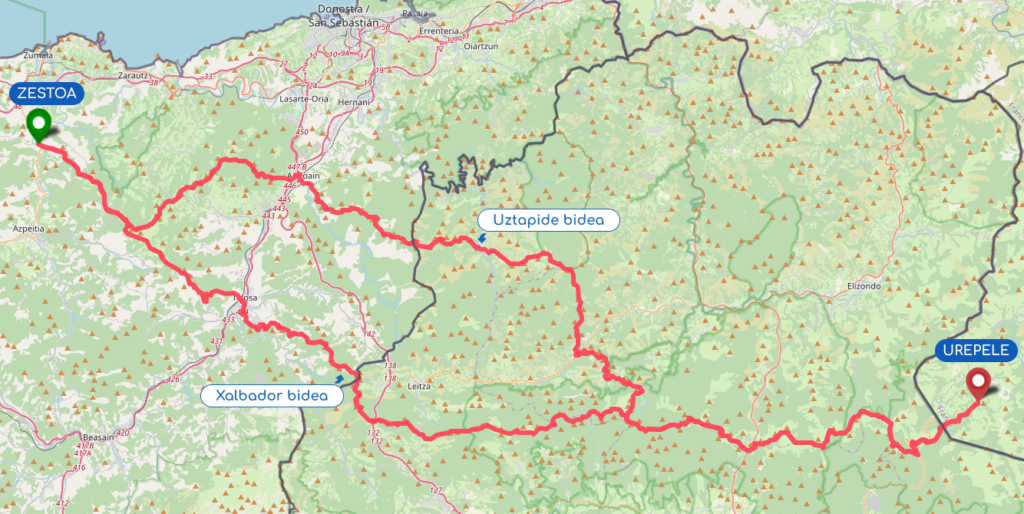 Uztapide bidea izango zen bide nagusia, 5 etapatan, 120 kilometroko bidea egiten duena. Bestea, Xalbador bidea, mendian gehiago zailduta daudenentzat: 4 etapatan 113 kilometro. Uztapide bidea zertxobait luzeagoa izanagatik, erosoagoa da eta azken-aurrekoa ezik beste etapa denak herrietan amaitzen dira (Andoain, Goizueta, Labaien, Artesiagako lepoa eta Urepele).